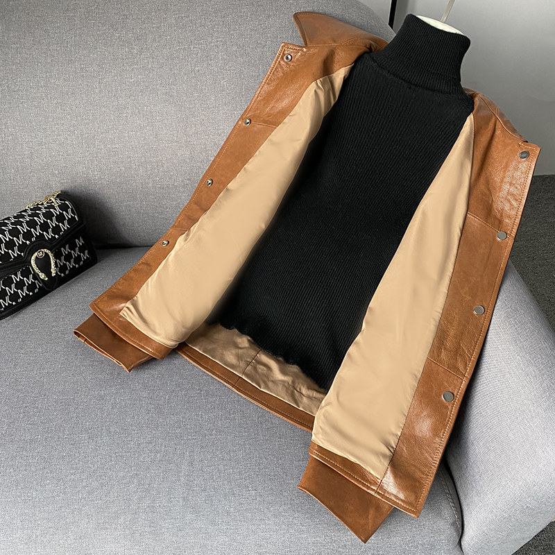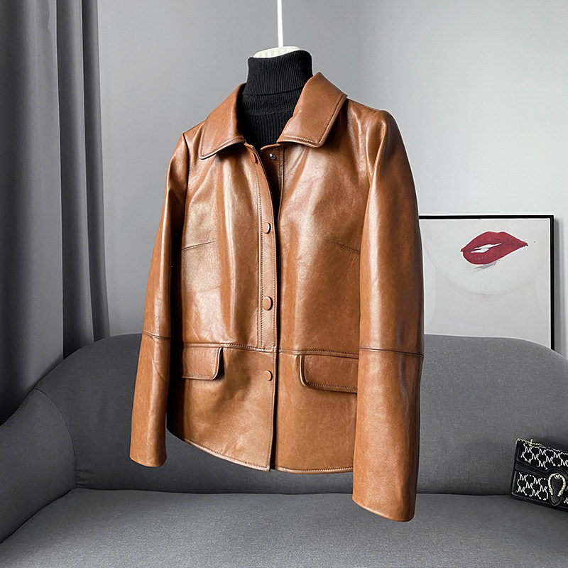 zqqz Hainen genuine leather leather clothes female short 2021 spring autumn Korean version small sheep leather jacket jacket 2027