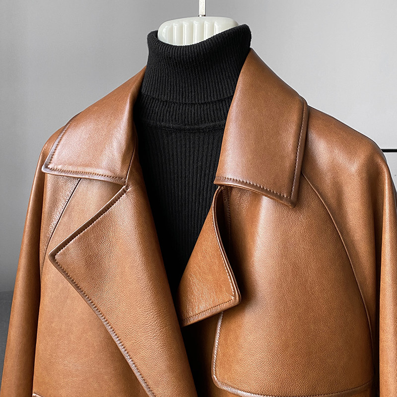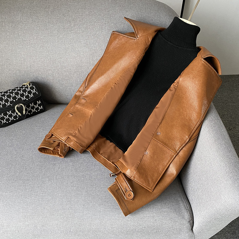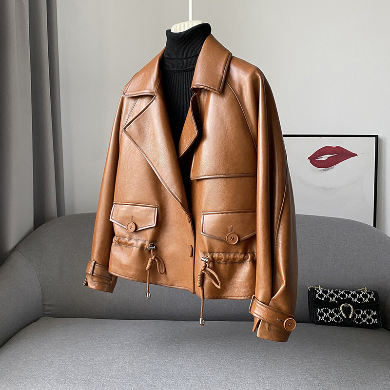 zqqz Hainen genuine leather leather clothing female short spring and autumn in Korean version sheep leather wind clothes cashew leather jacket jacket 2251