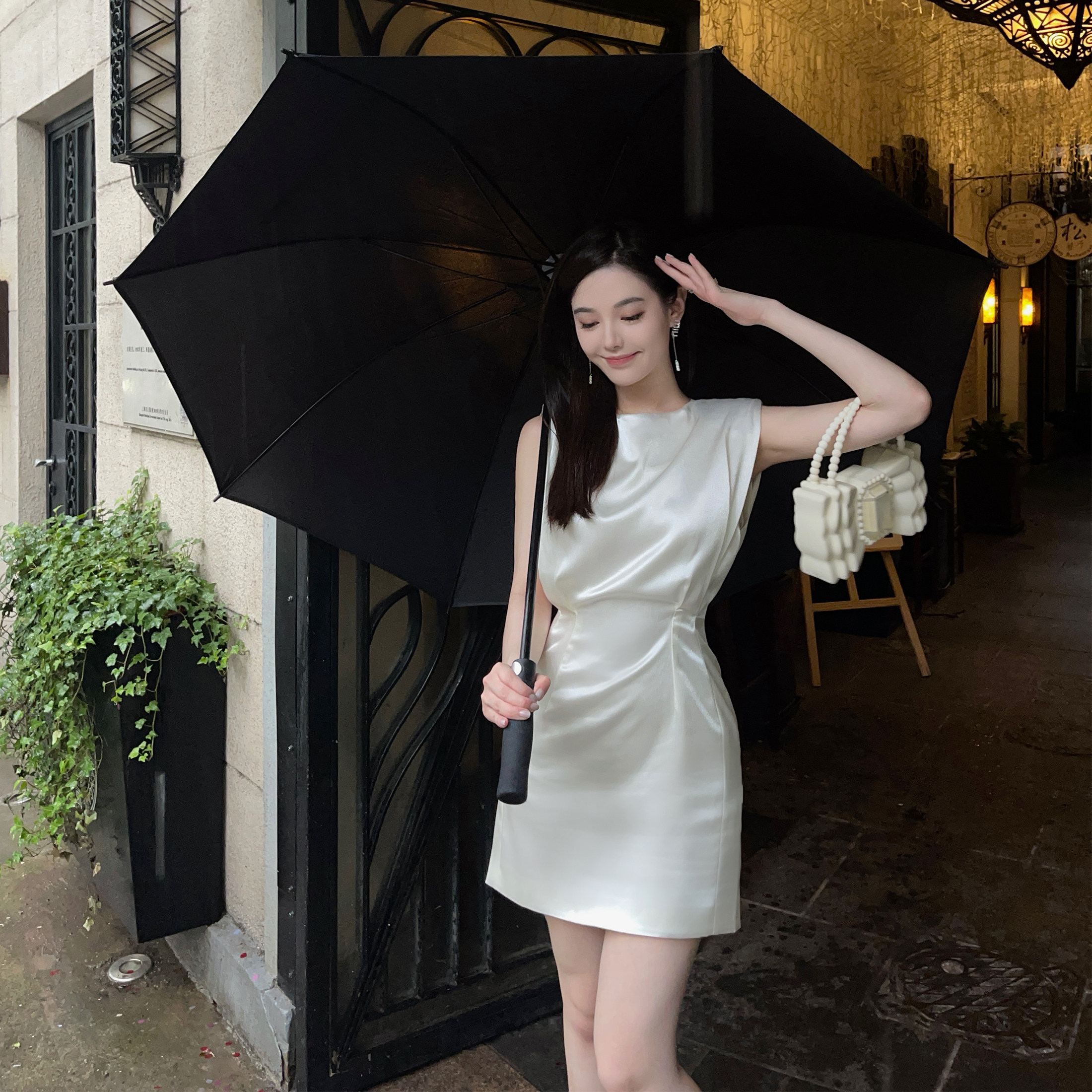 nicky palace style spring and autumn fashion champagne temperament dress high-end French Hepburn style sleeveless high-end sense