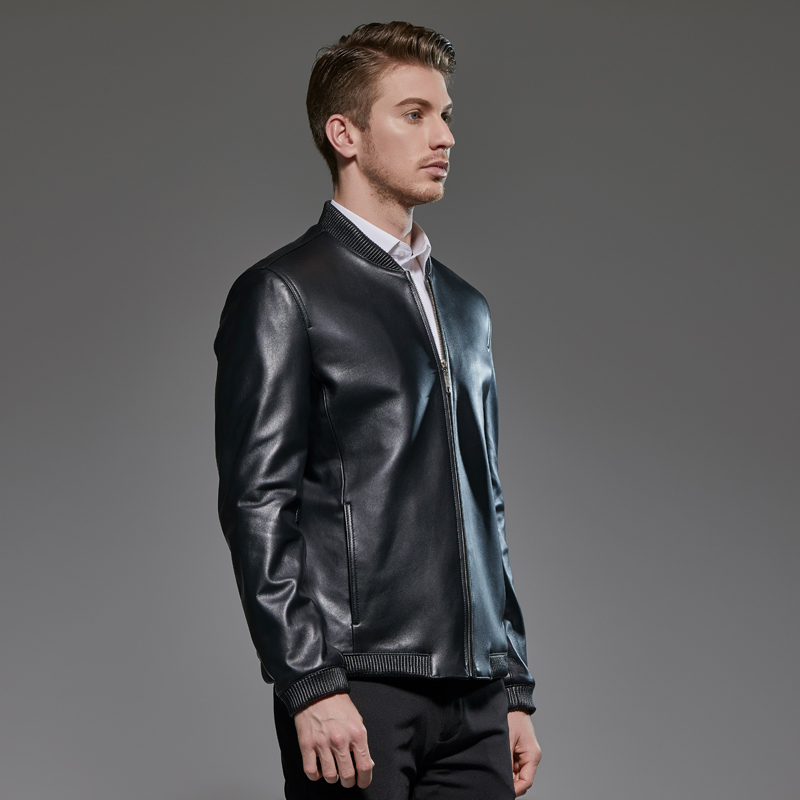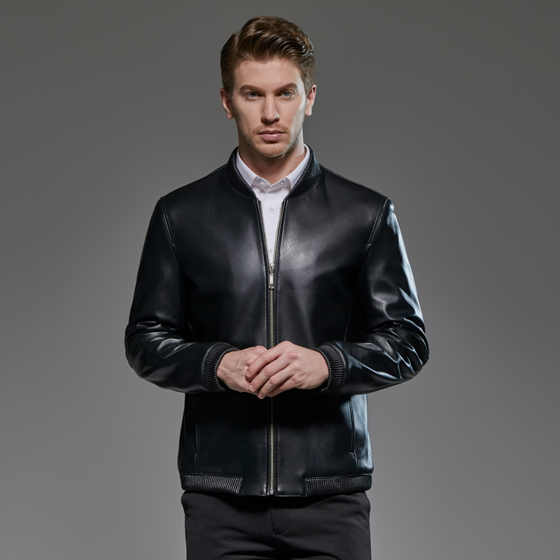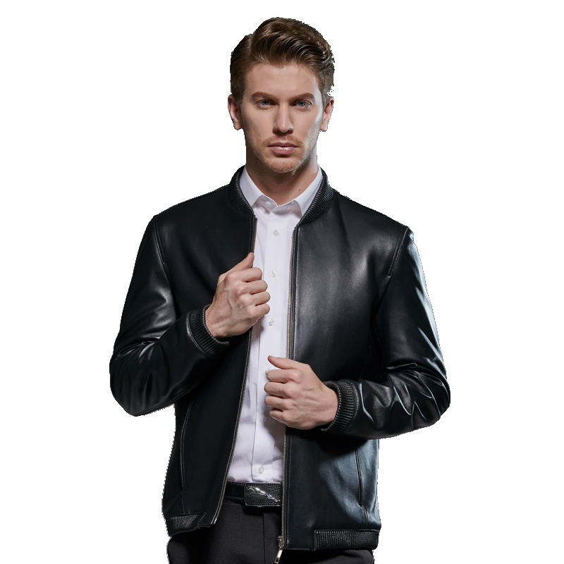 Men's Ghefei steps up genuine leather clothes Haining sheep leather big size for men with loose baseball collar short leather jacket