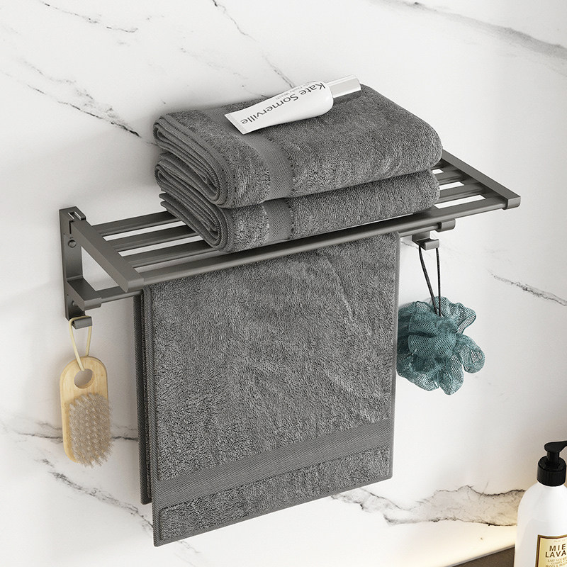 Makeup Room Deep Space Grey Towel Rack Gun Grey Bathroom Shelve Space Aluminum Washroom Free of perforated Shelf