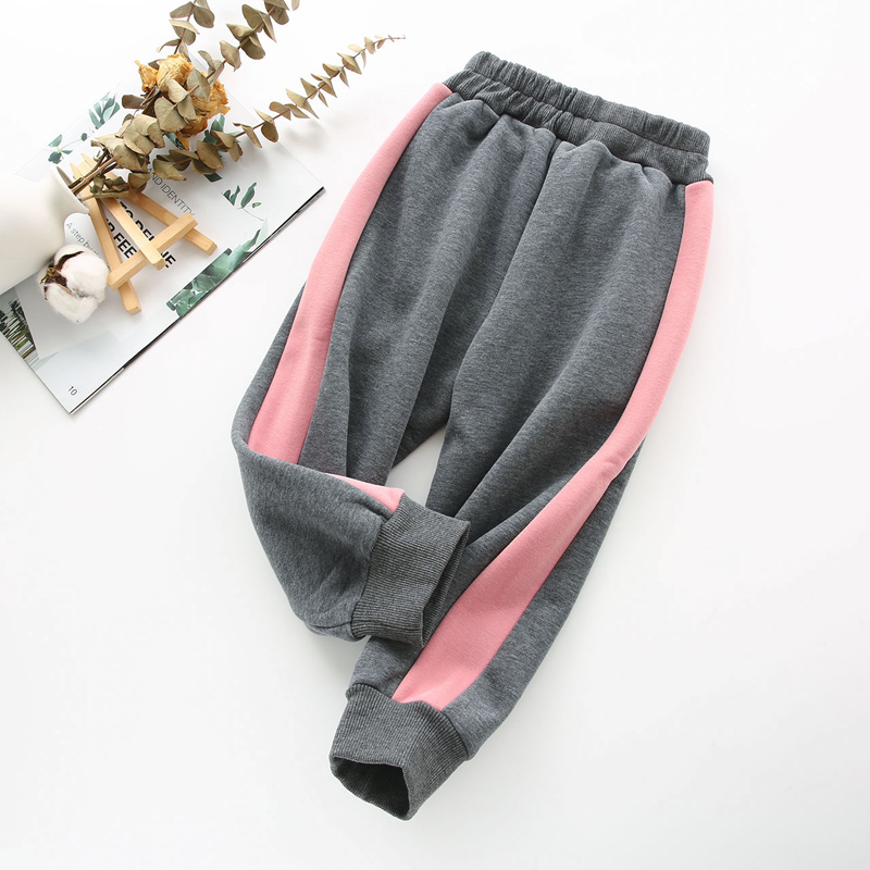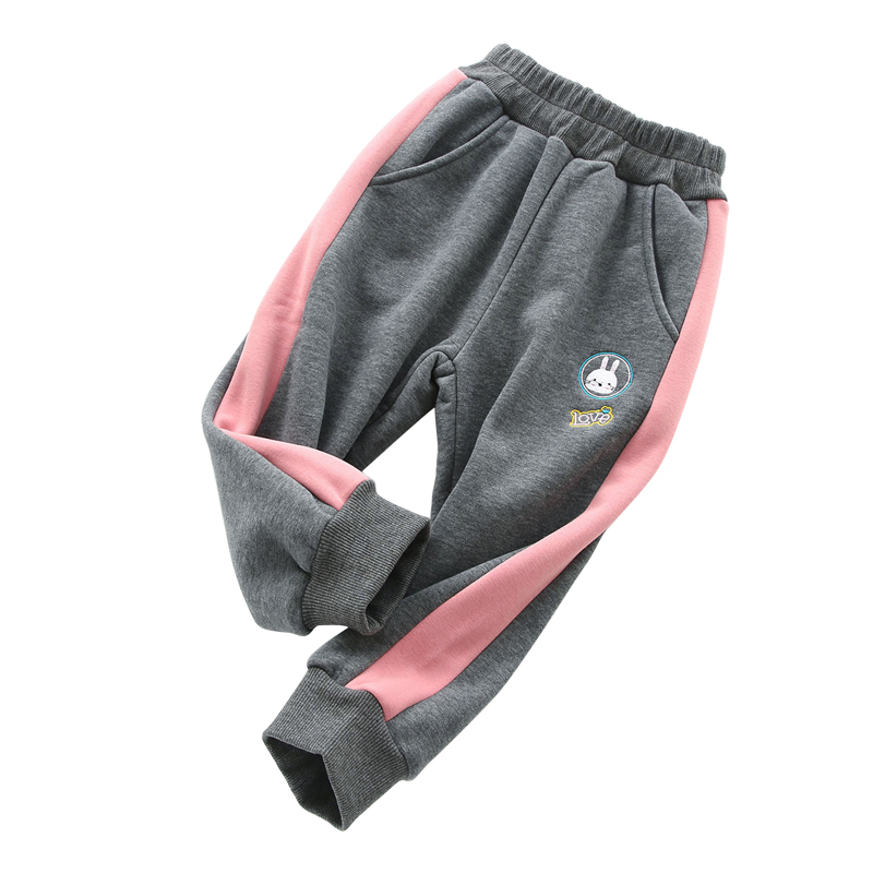 Little girls spring, autumn and winter fleece pants girls thick outer wear sports pants children's all-in-one fleece casual warm trousers