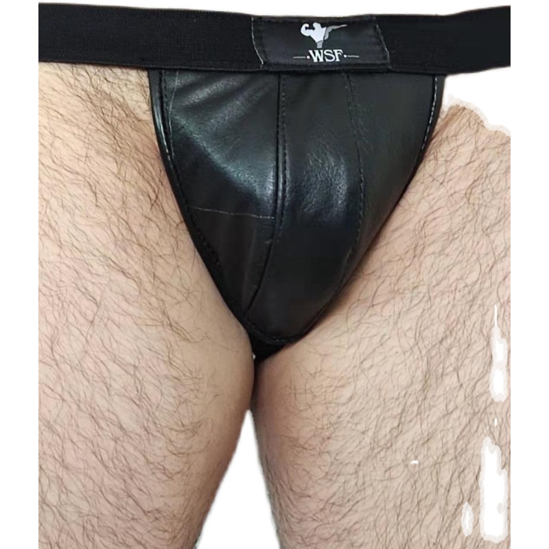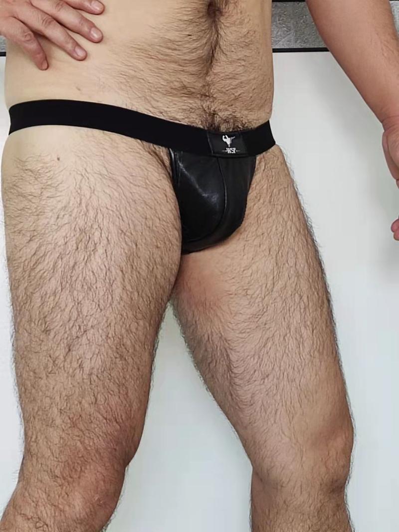 Men's smooth calfskin leather T pants sexy single D-type men's nightclub bar performance wild sexy underwear leather