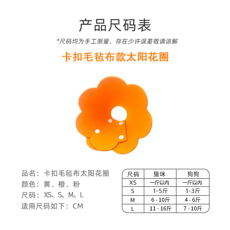 XS-Supersmall (neck circumference 5-9cm) Weighing 2 than 2 catties) S-small (neck circumference 10-18cm) Weighing 3-5 kilograms) M-Medium (neck circumference 19 -