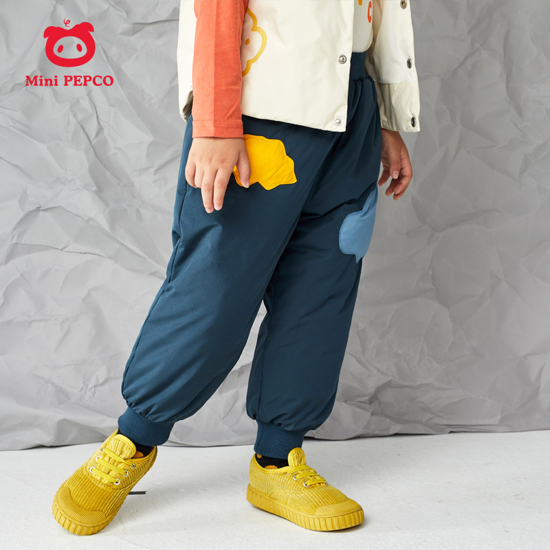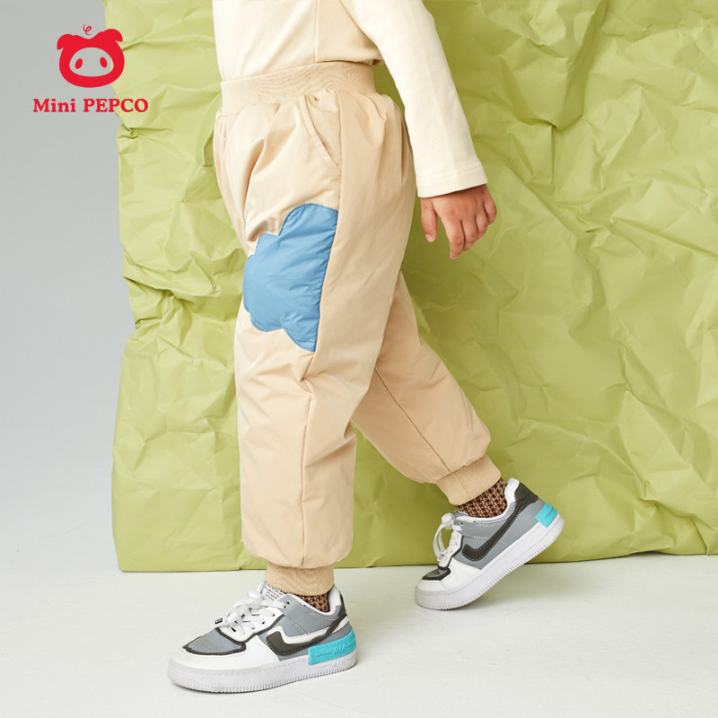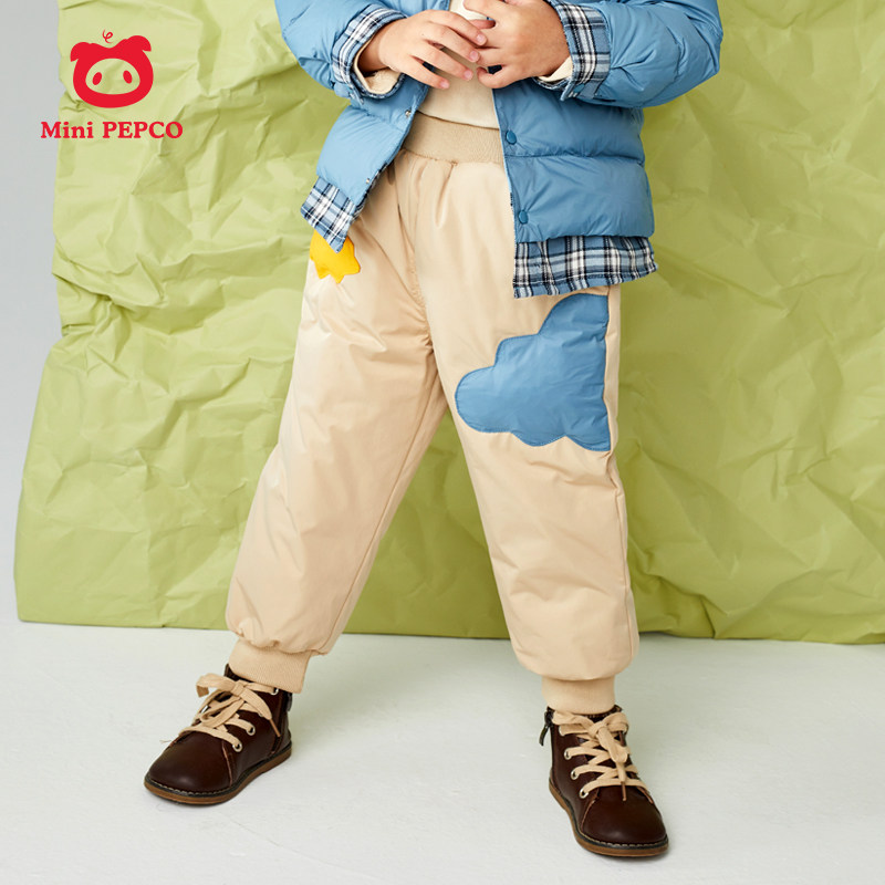 Boys' Down Pants Autumn and Winter Children's Baby Warm Pants Plus Velvet Thickened Casual Pants Piggy Banner Winter Clothes