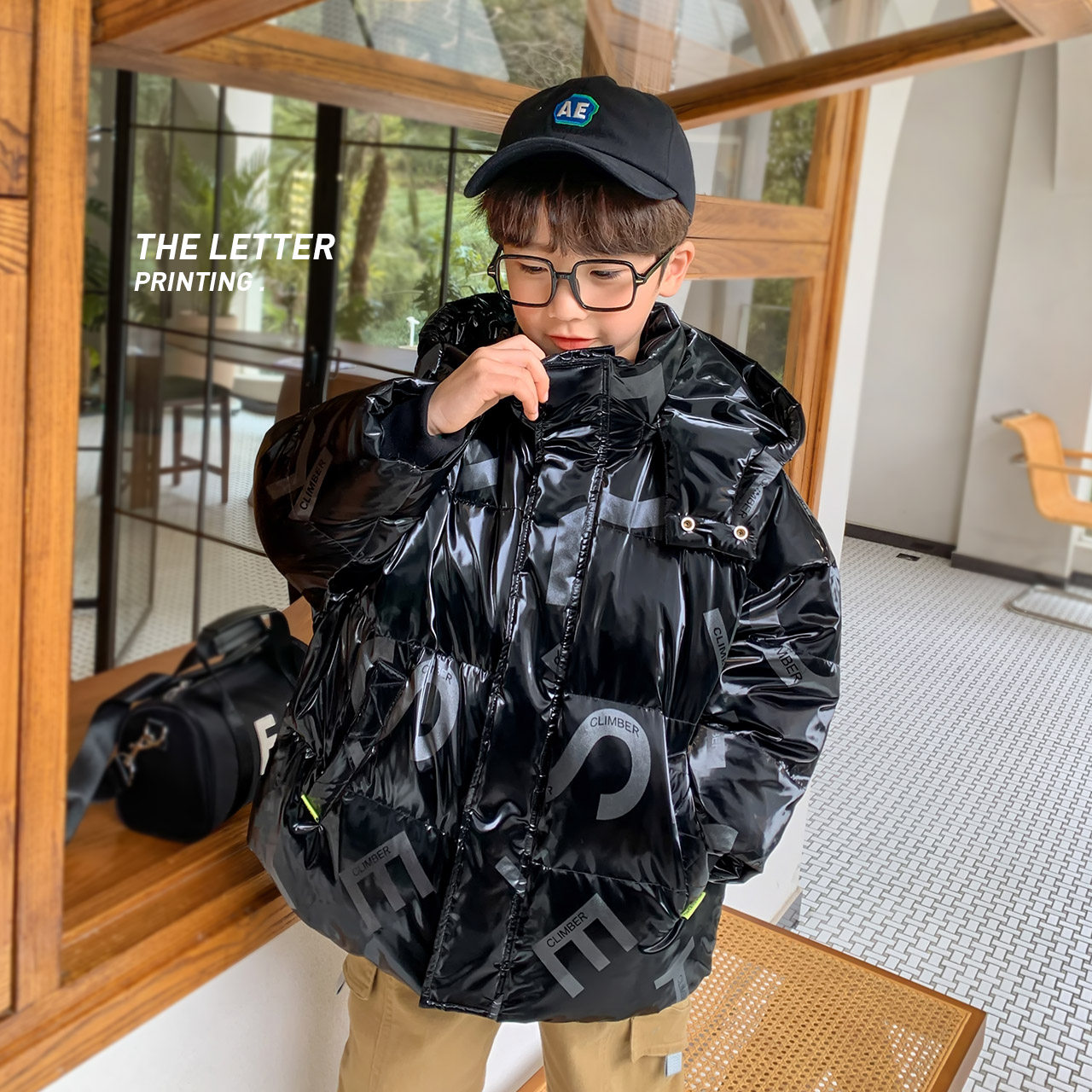 Left West Boy down clothes Children thickened Lianhood jacket bright face Chauded CUHK Tong's winter clothing 2021 new children's clothing
