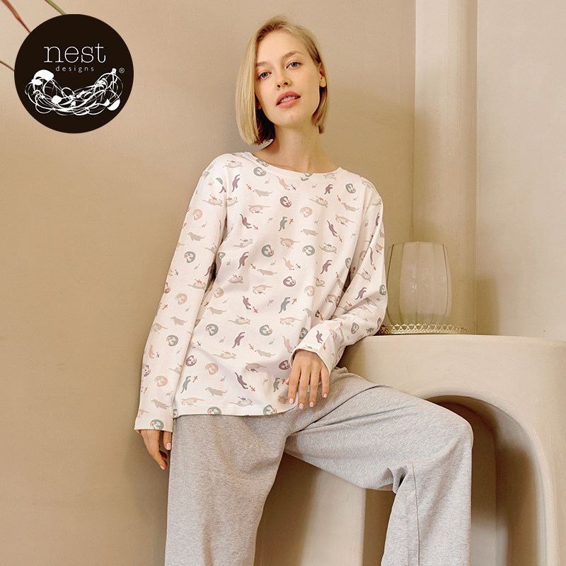 Nest Designs Homewear Set Cotton Autumn Women's Confinement Clothes Long Sleeves Long Pants Pajamas Casual