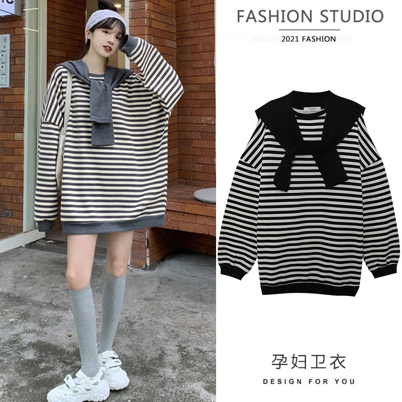 Pregnant woman Autumn Fashion Suite Fashion style Spring and autumn new Long sleeves Jacket Loose Striped Casual Blouse fall Two sets slim fit