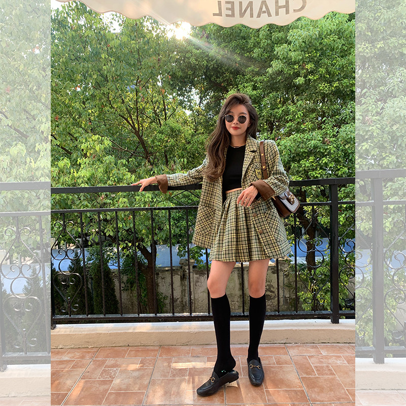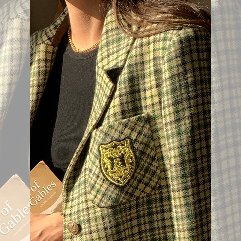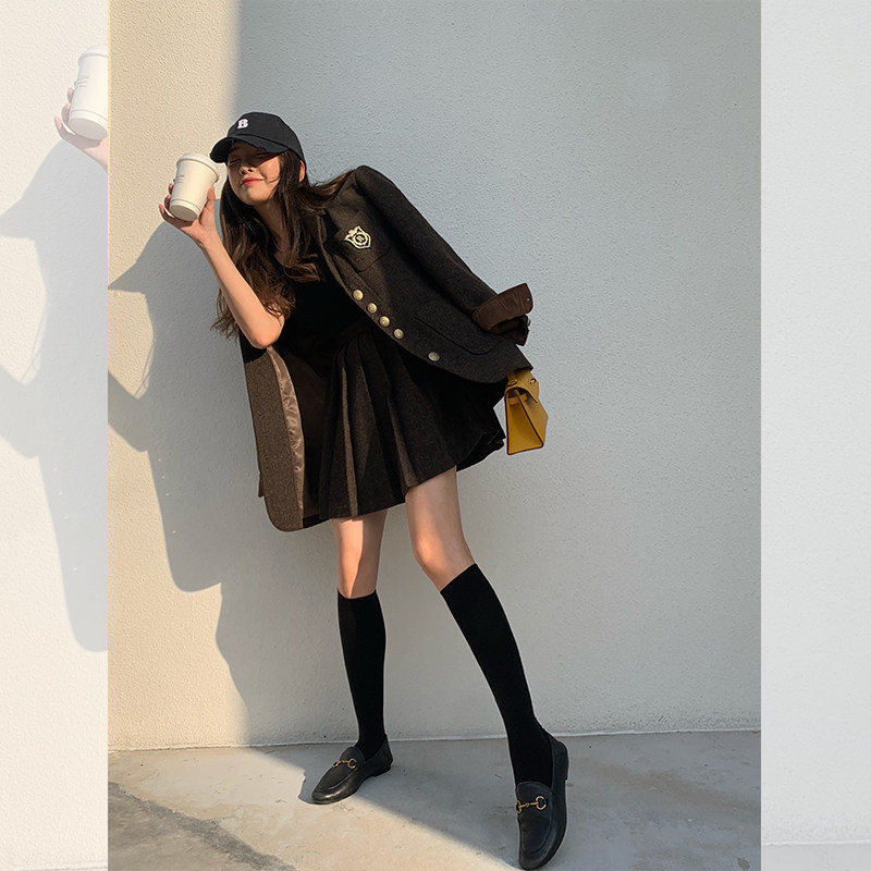 (Spot) Schwei Sister Suit Aristocratic College Wind Wool Badge Embroidered Jacket 100 Plexant Skirt Pants