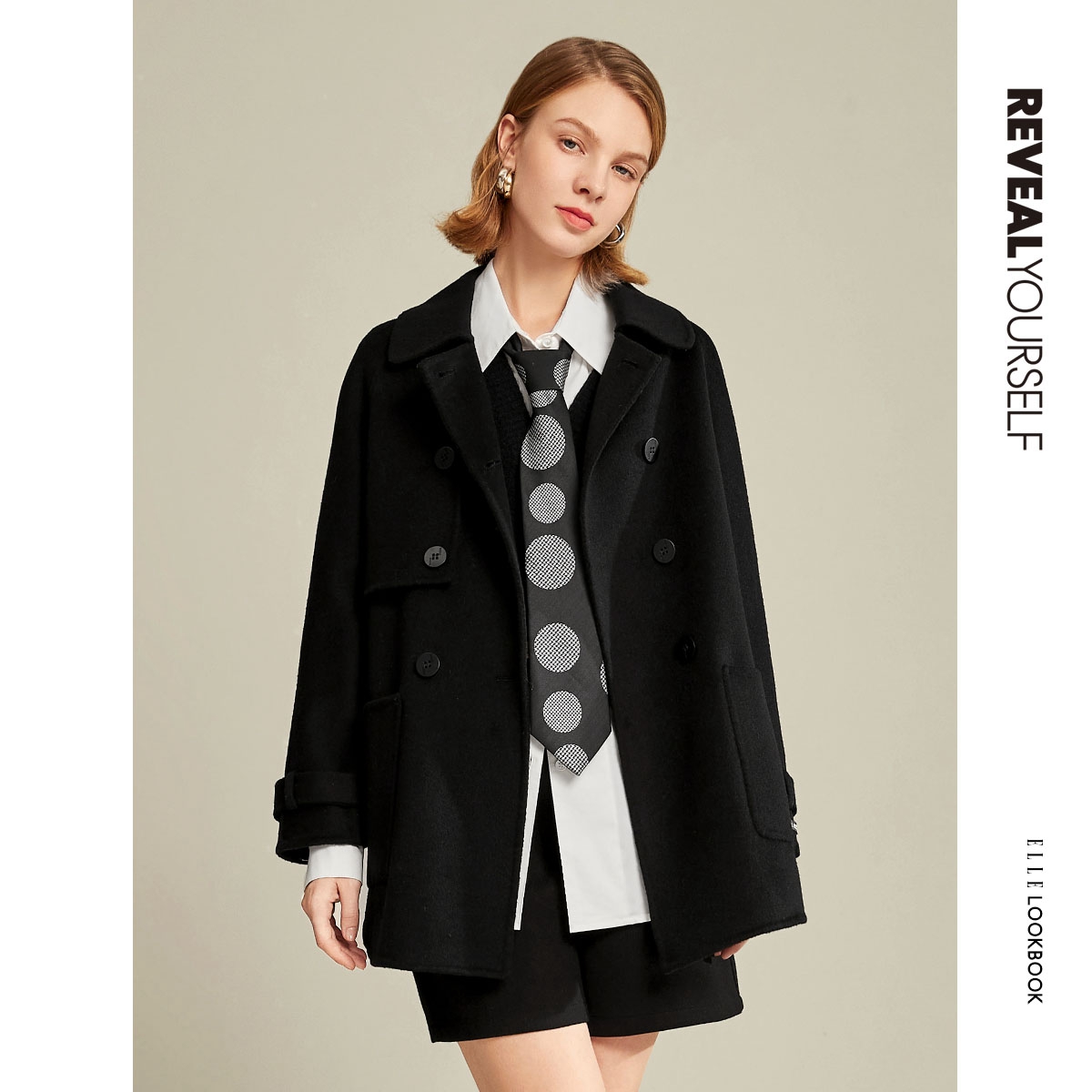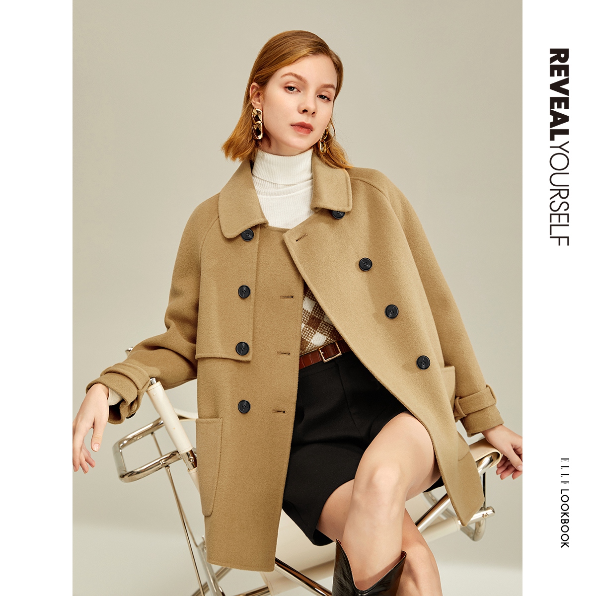 ELLE khaki wool coat women's clothing 2022 new autumn and winter thin design sense short thick woolen coat