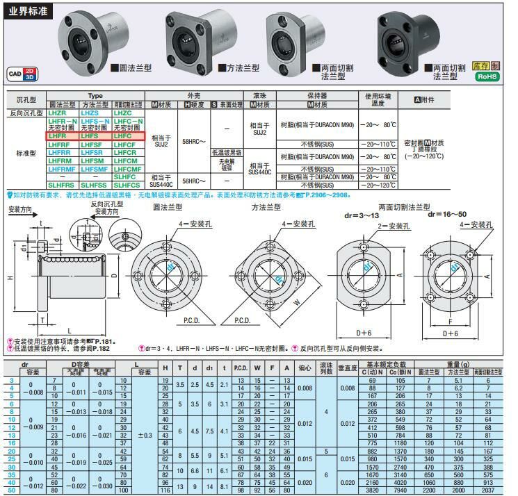 Square flange linear bearing single liner C-LHFS6 8 10 12 13 16 20 25 30 35 40 50