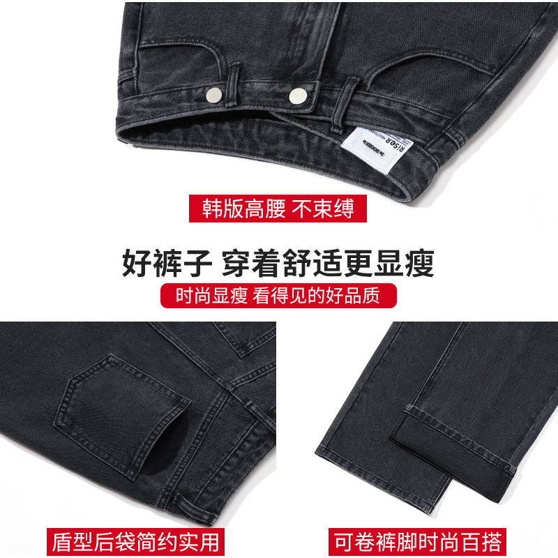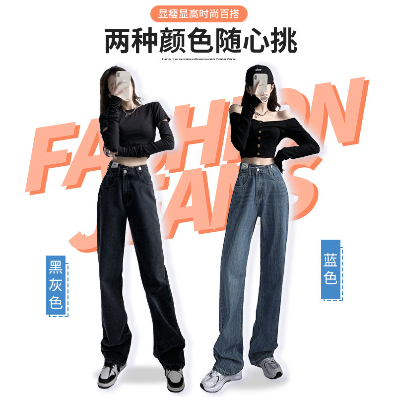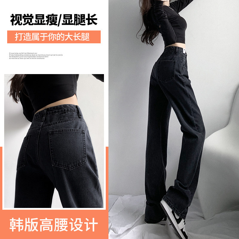 Black jeans female spring and autumn dress 2023 new high waist small lax lax broad leg pants summer