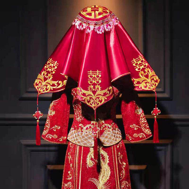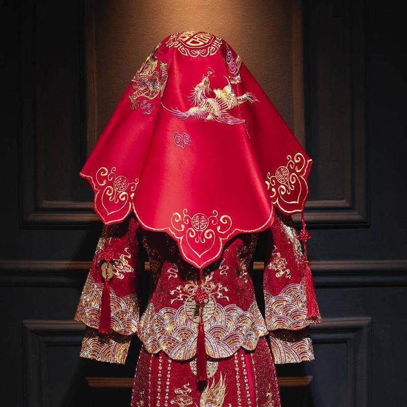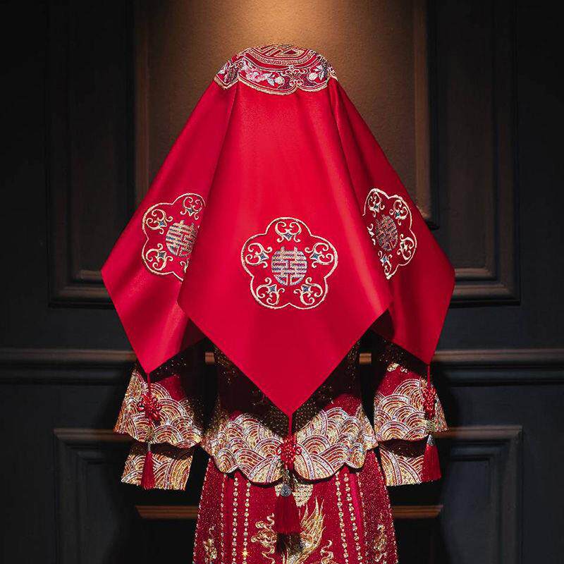 Red cover head married Chinese new cover bride embroidered big red Xiuhe clothing cover to increase Hipalongfeng