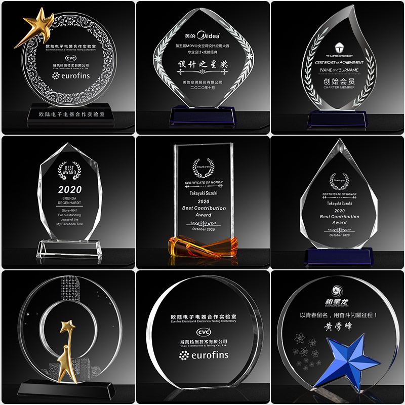 Crystal Trophy Custom Honours Medal Set for Creative Authorization Card Corporate Excellent Employee Annual Meeting Award Souvenir Souvenirs