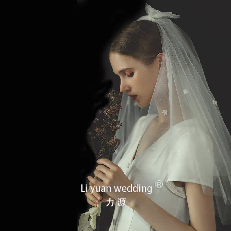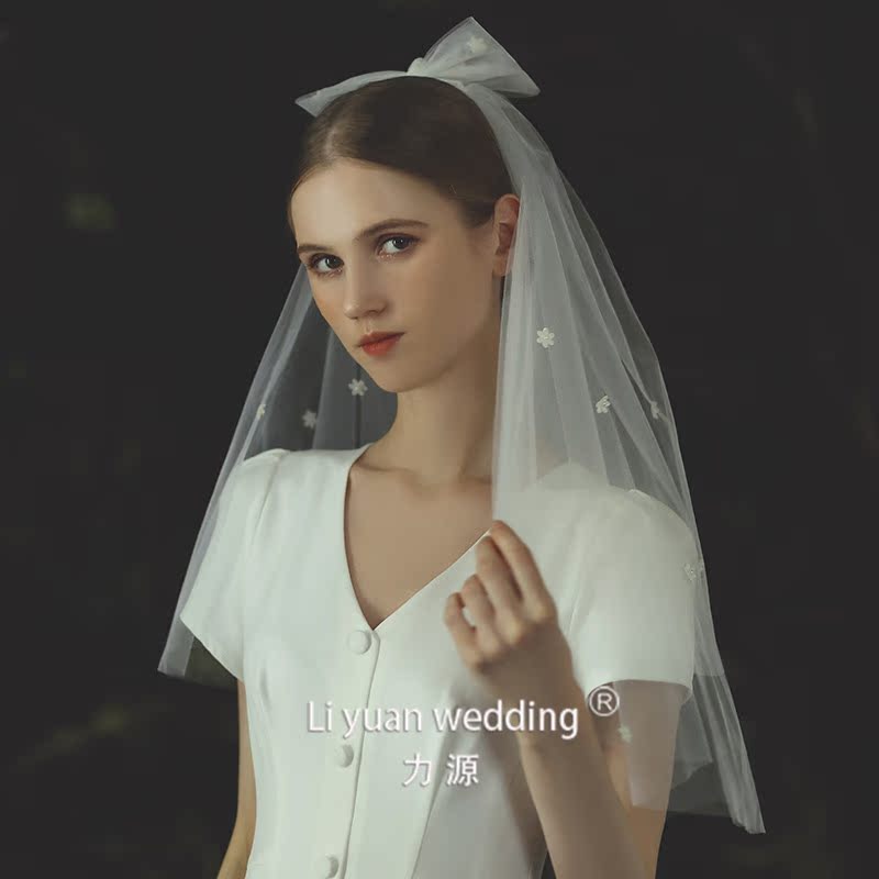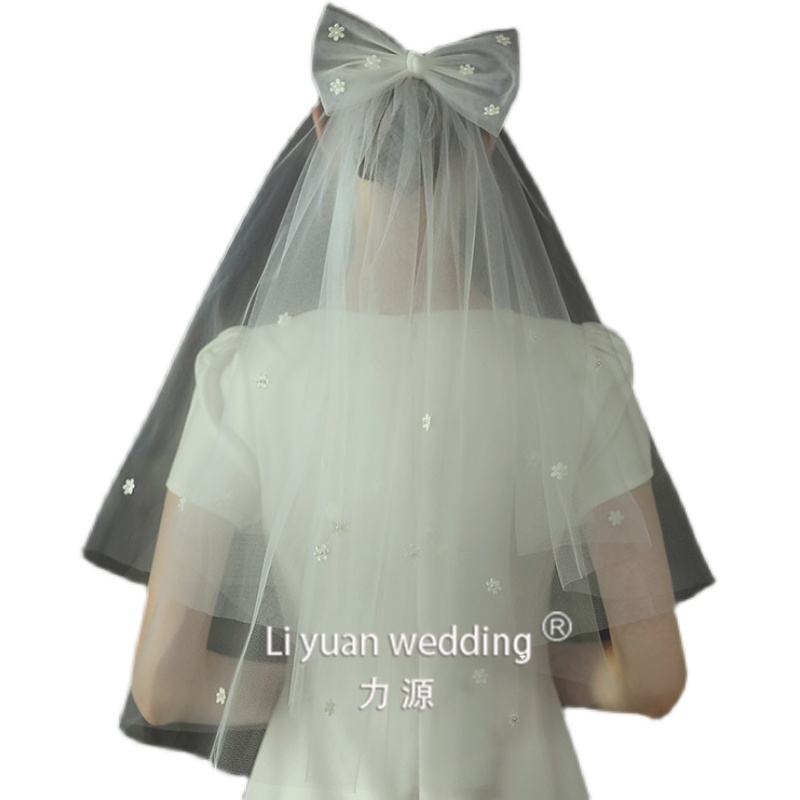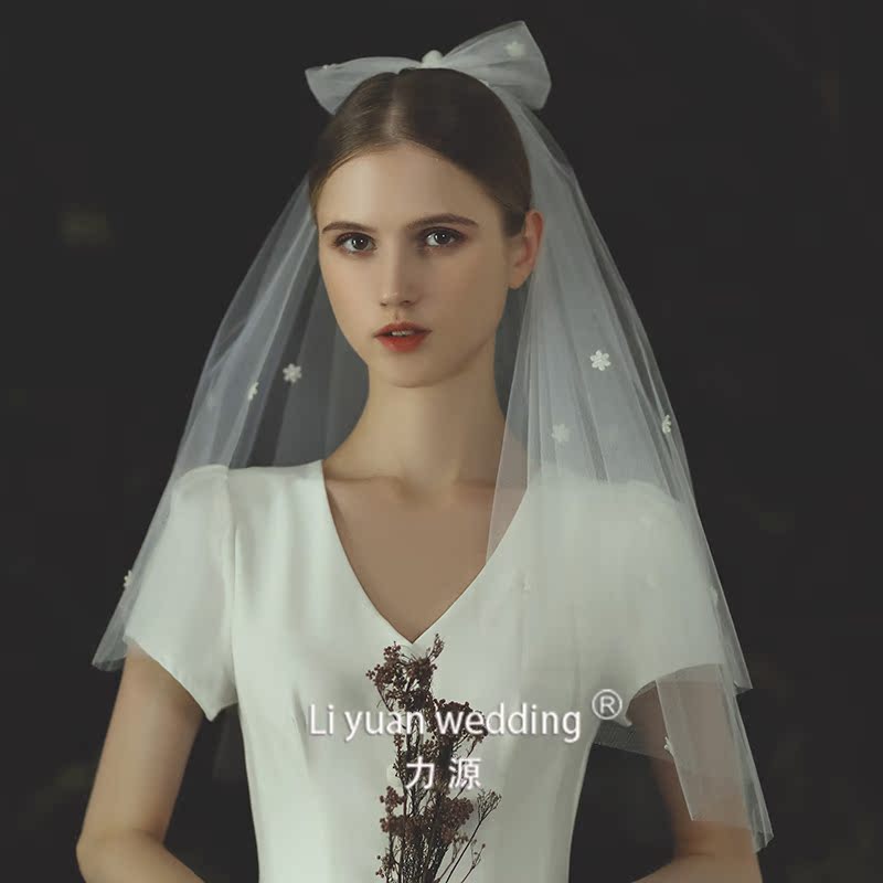 2021 Summer New Bridal Flowers Head Yarn Wedding Brief Supersenssen Tie Wedding Dress Headwear Double short Han style