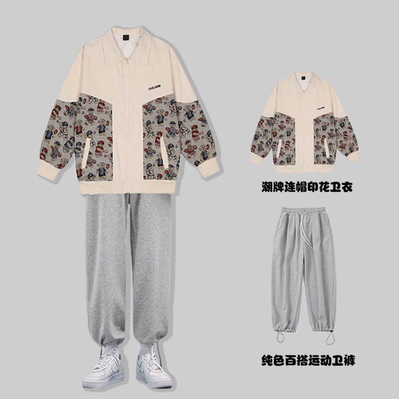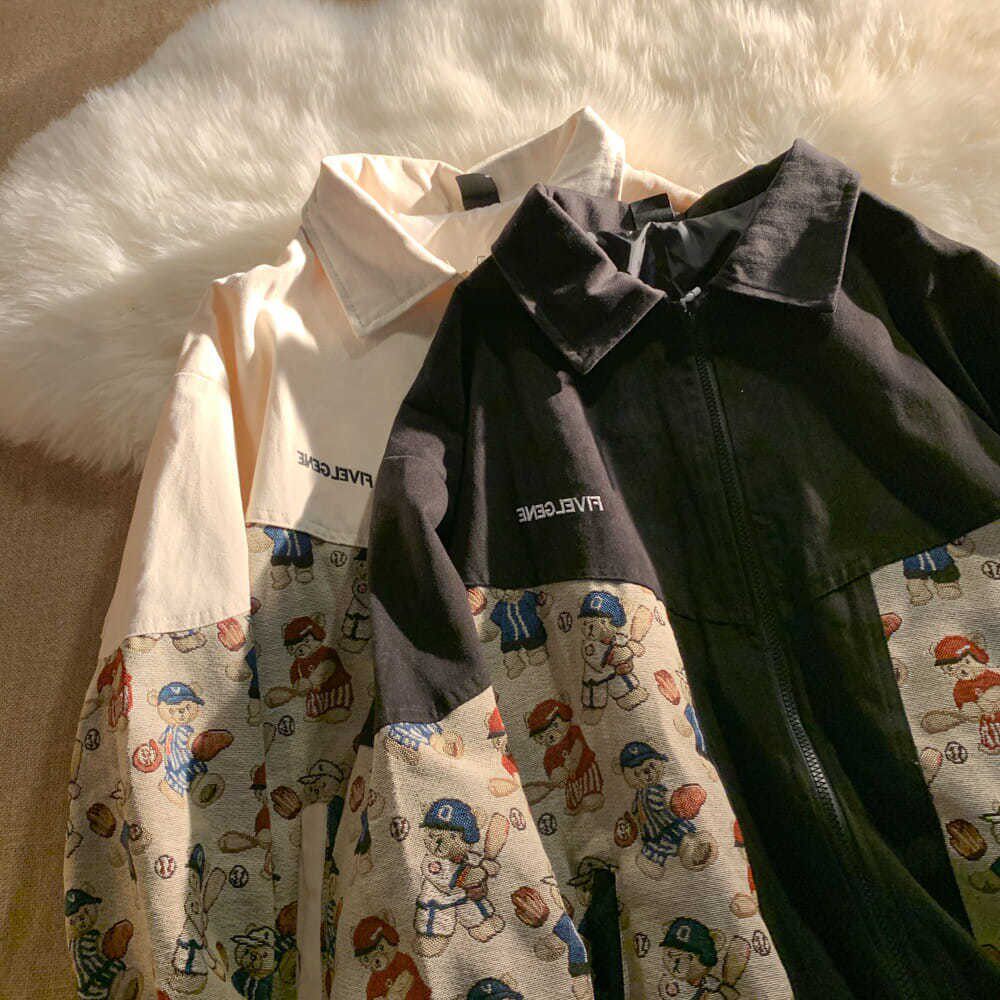 Two sets of small bear splicing jacket jacket male thin section Tide Cards Easy 100 ride-hailing Ambience Lovers of baseball blouses