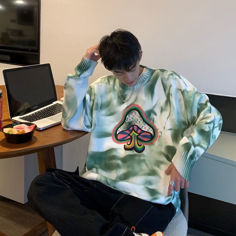 Personality Zdyeing needle weaselwear Men's 2021 autumn Winter New Lazy Wind Lovers Round collar sweater Casual Pants Set