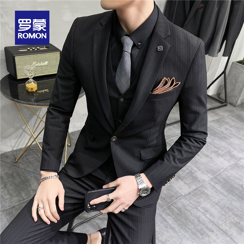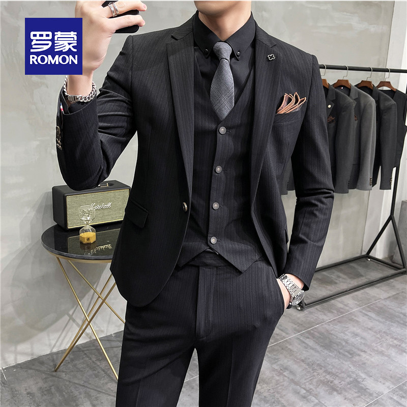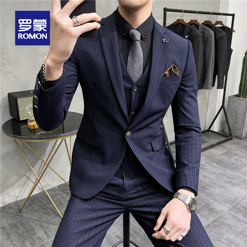 Romon Spring 2022 Striped Blazer Men's Suit Groom Wedding Dress Slim Business Casual Professional Suit