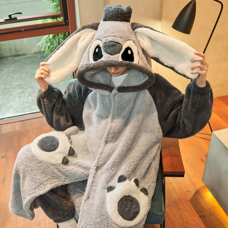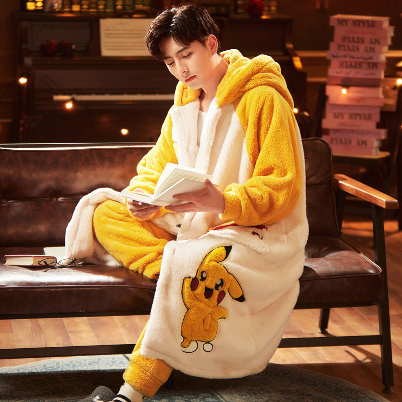 Men's pajamas autumn and winter padded velvet coral velvet robe set Winter flannel dinosaur home wear