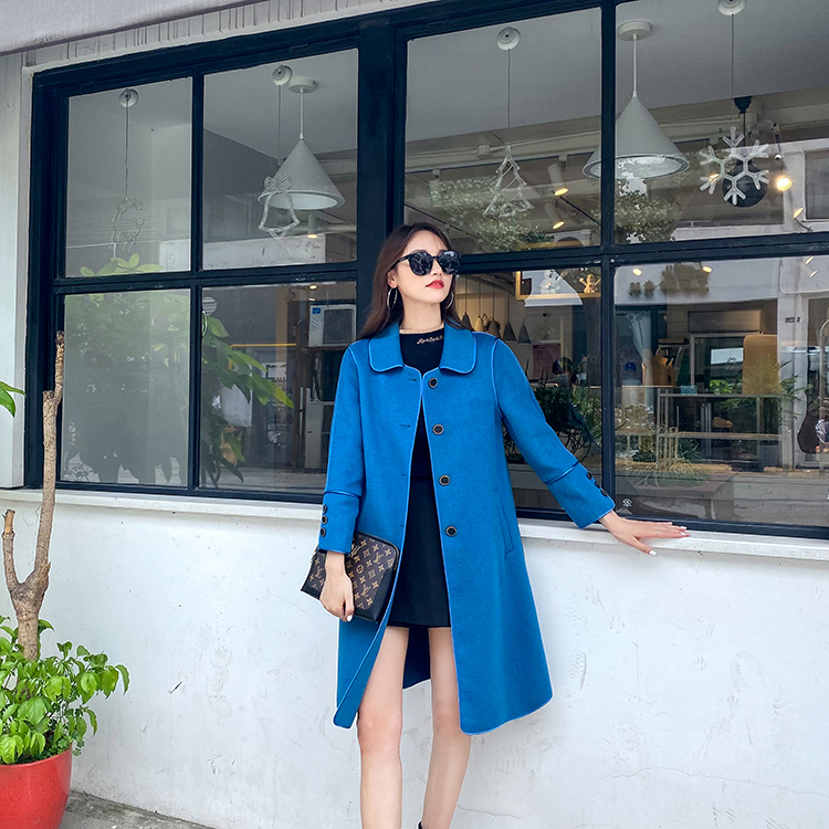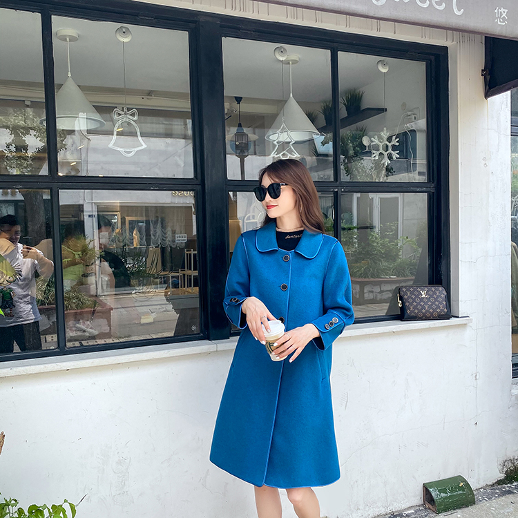 Off-season popular blue double-sided cashmere coat women's 2021 winter new woolen woolen coat mid-length version