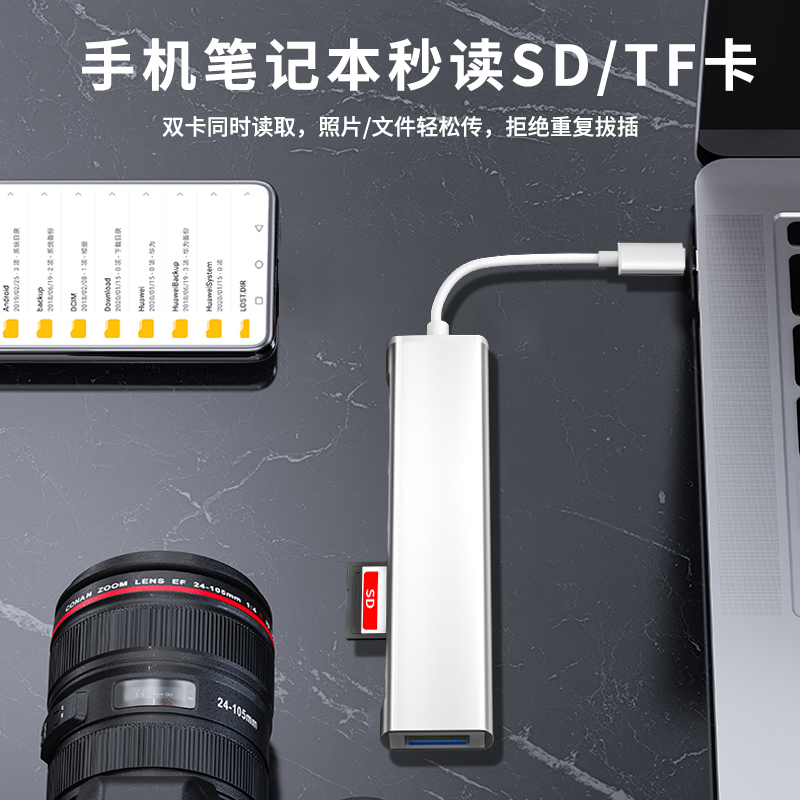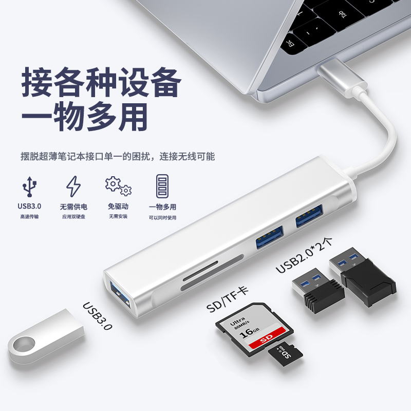 Type-c interface---Multi-function extension (USB3 0*3 TF SD) silver USB interface---Multi-function extender (USB3 0*3)