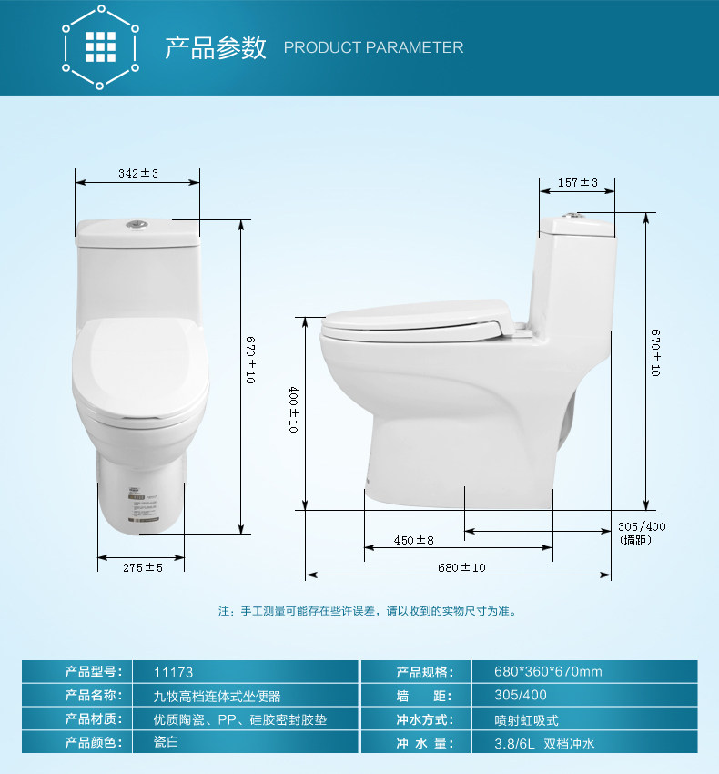 JOMOO Jiu Mu Siphon Flush Toilet Water-saving and Odor Small Household Toilet 11173