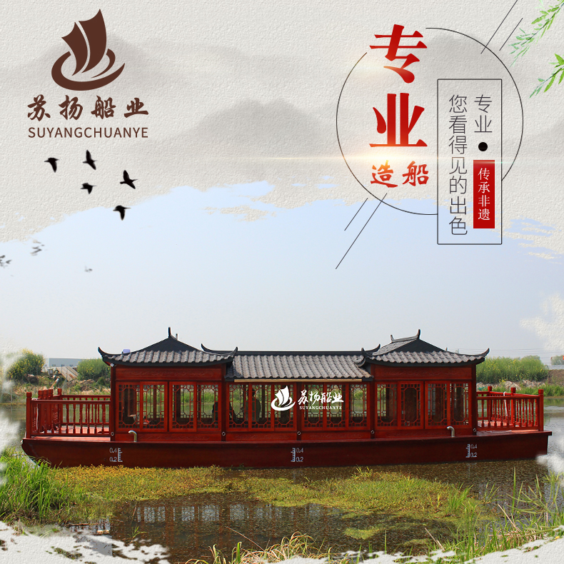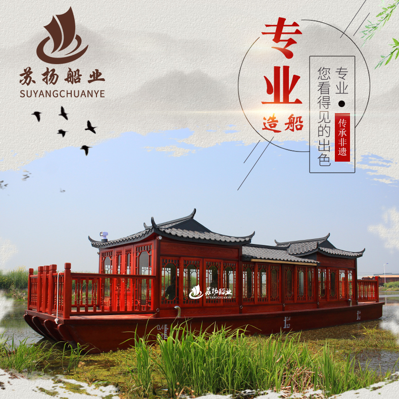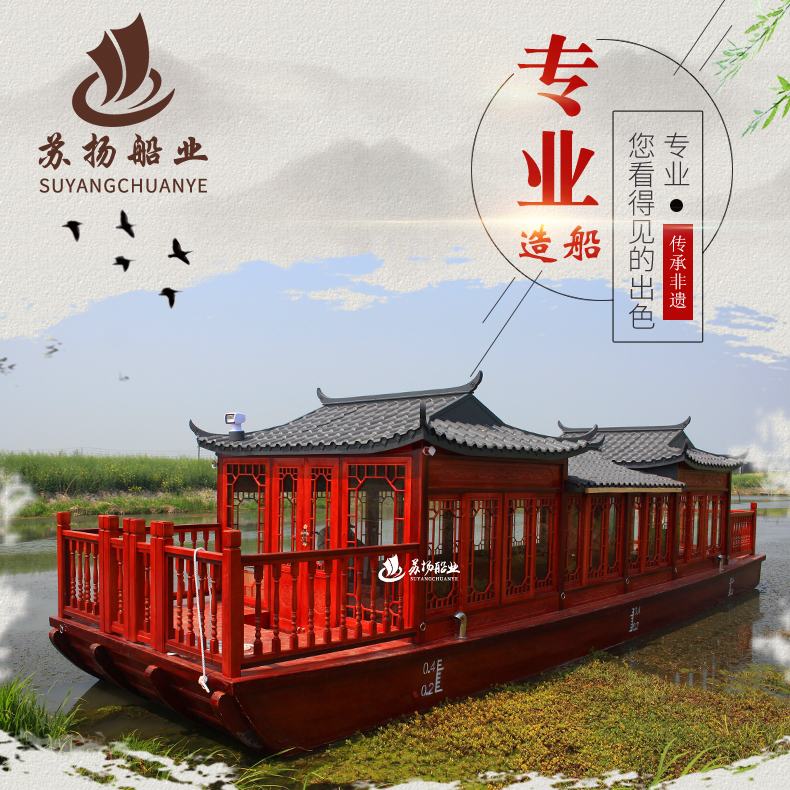 Wooden boat painting boat boat sightseeing tour large electric imitation ancient scenic spot Real Tour Reception House Water Dining Boat-Taobao