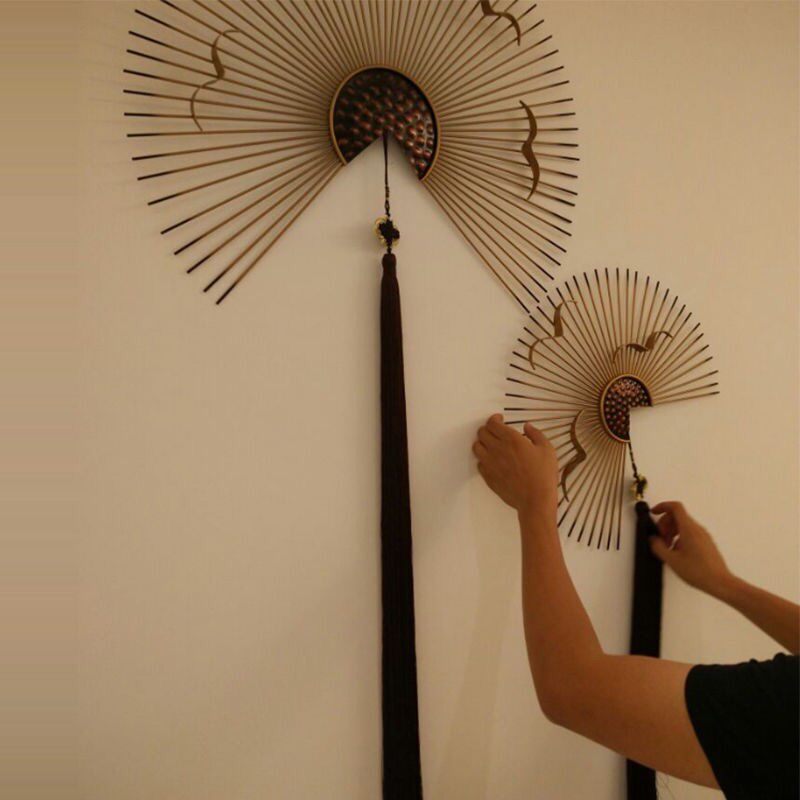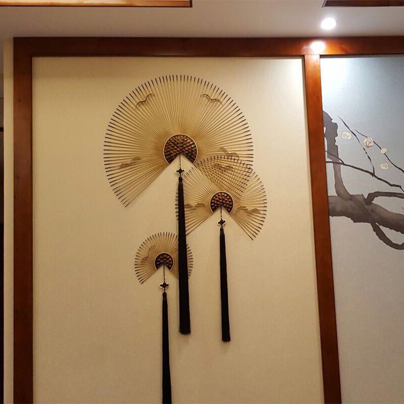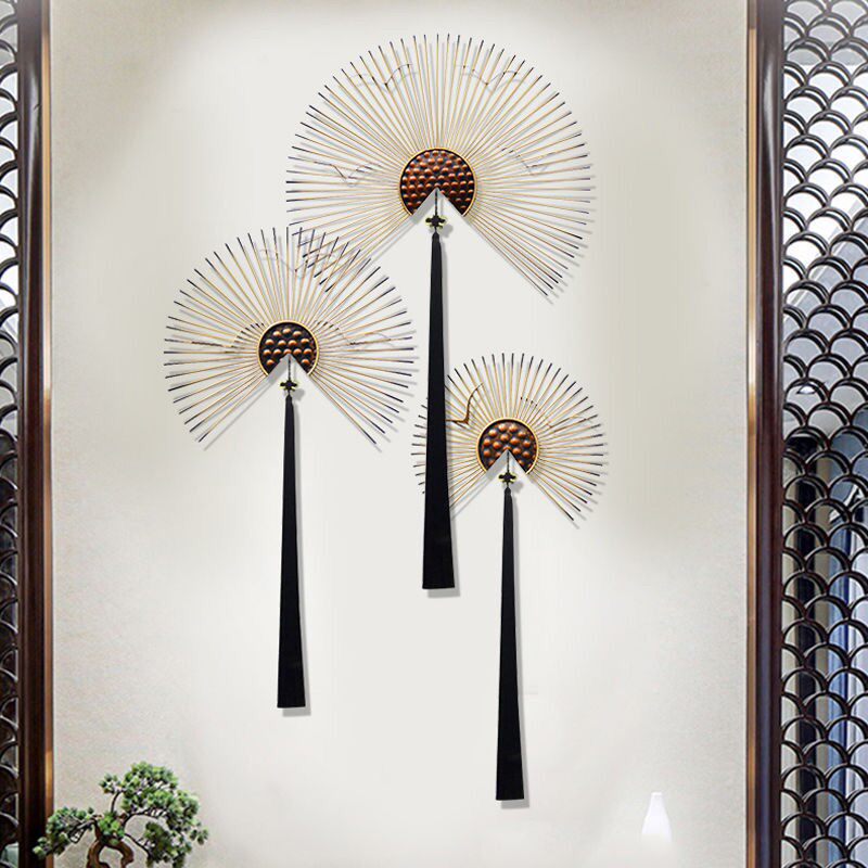 New Chinese Iron Art Wall-mounted Ancient Wind Fan Wall Adornment Light Extravagant Wall Decoration Creative TV Wall Background Wall Decoration
