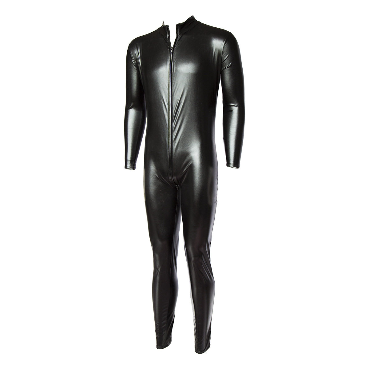 Men's zipper tight sexy overall paint leather coat black men's nightclub clothes performing straight sweater