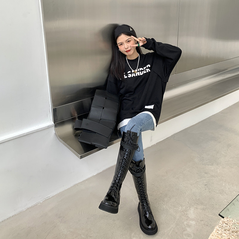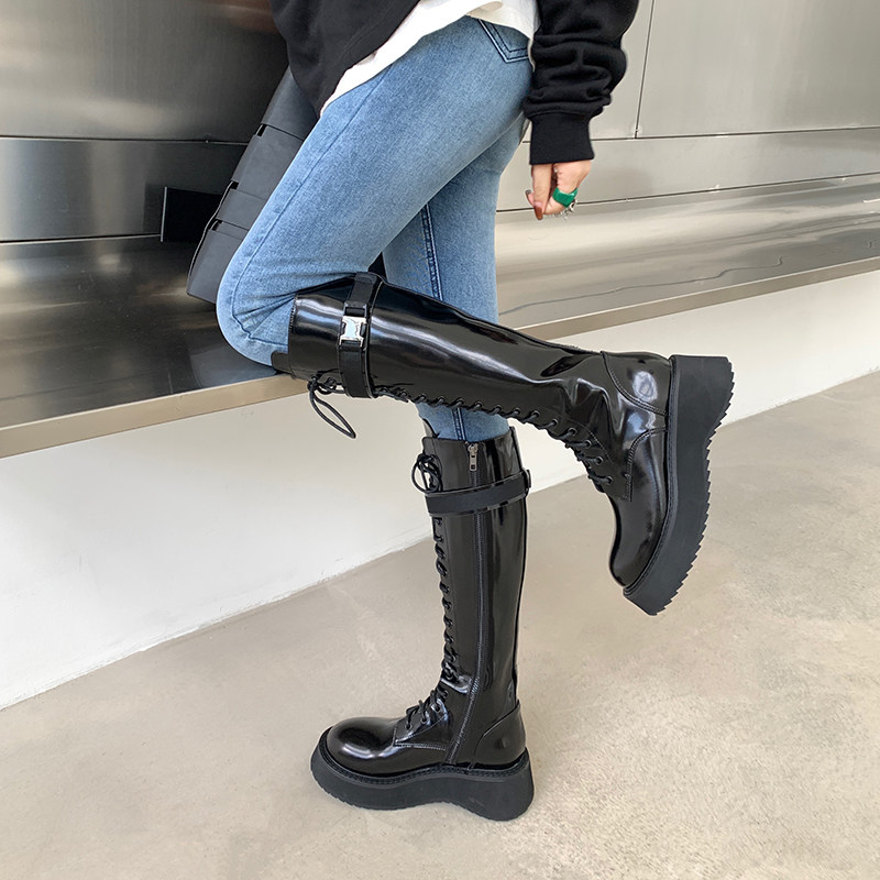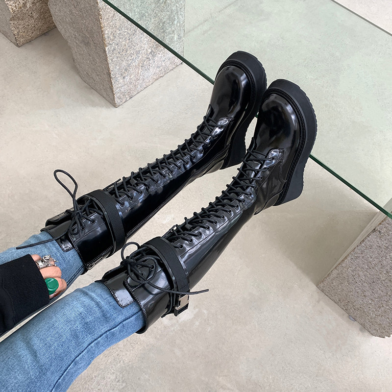Aberhouse European and American pine skin boots female new thin thin boots tied to cycling boots in autumn
