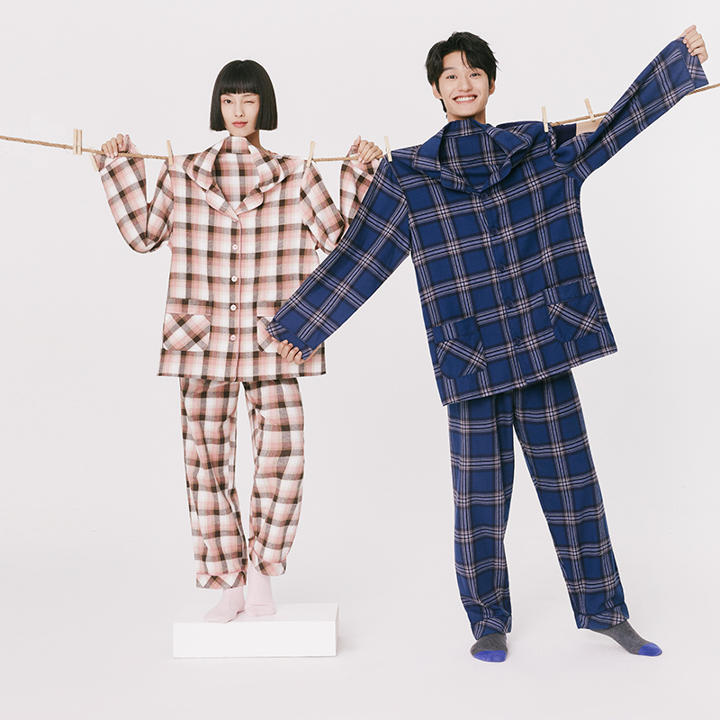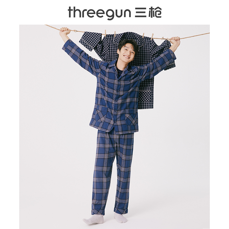 Three-gun underwear official flagship store home wear cotton set pattern couple long sleeves long pants two men's and women's pajamas