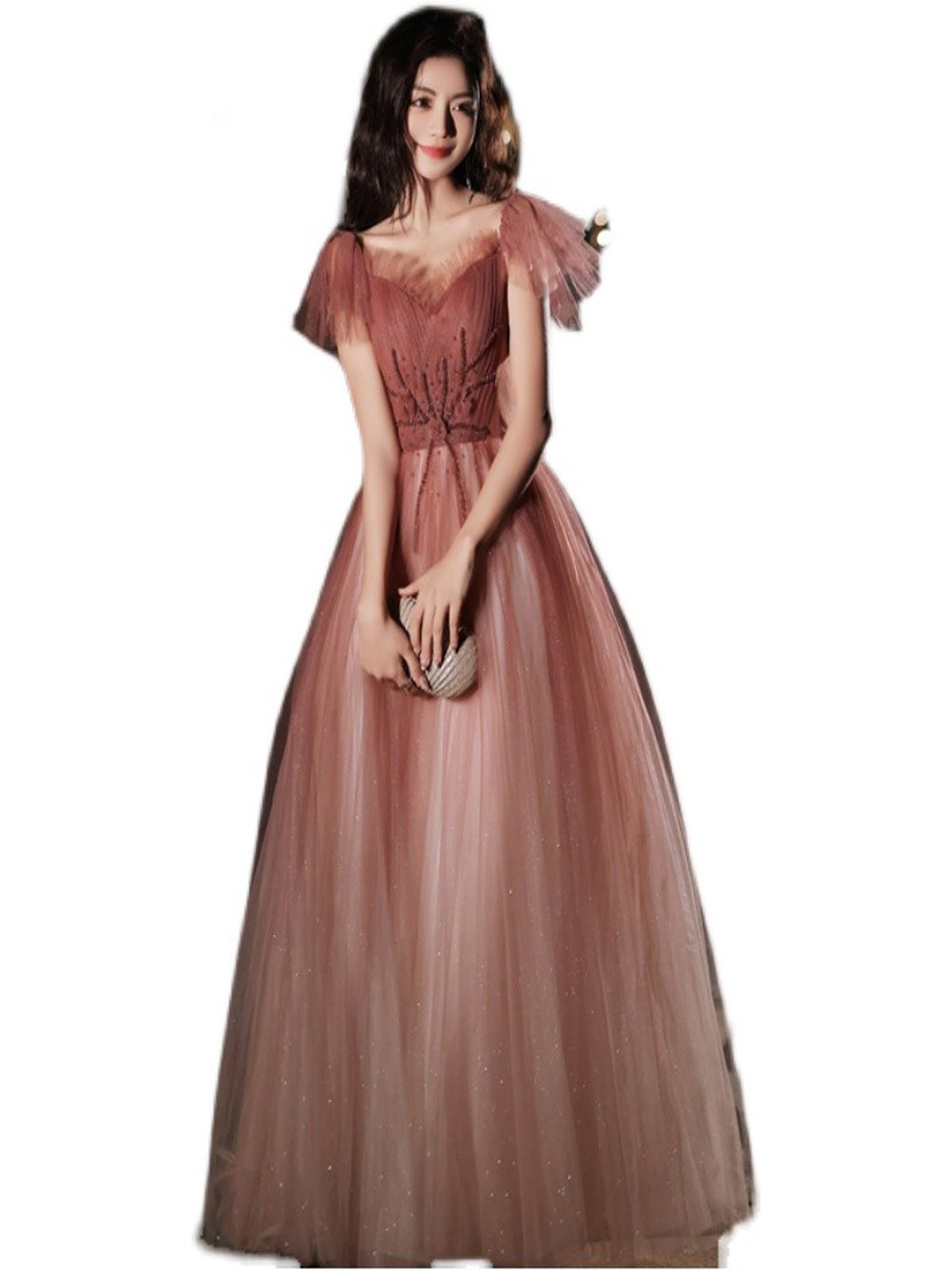 Bride Toast Dress Female 2021 New Autumn Dinner Annual Meeting Temperament Long Skirt Wedding Gradient Western-style Host