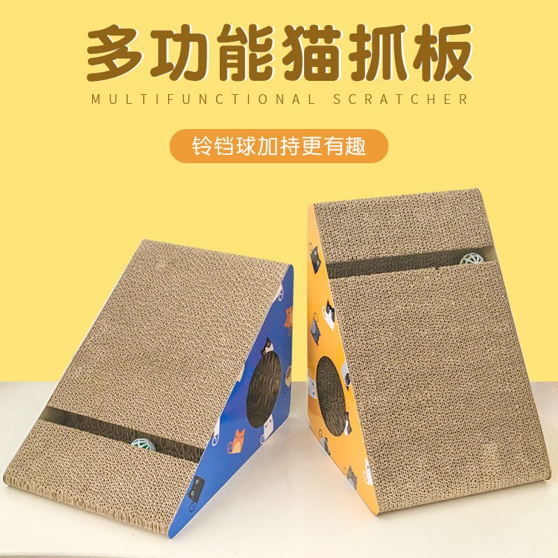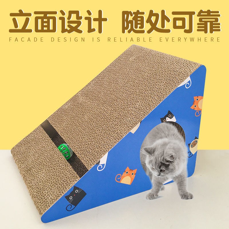 Cat grabbing plate grinding claw vertical triangular cat claw plate corrugated cardboard cat sofa cat grabbing basin-shaped kitty toy supplies