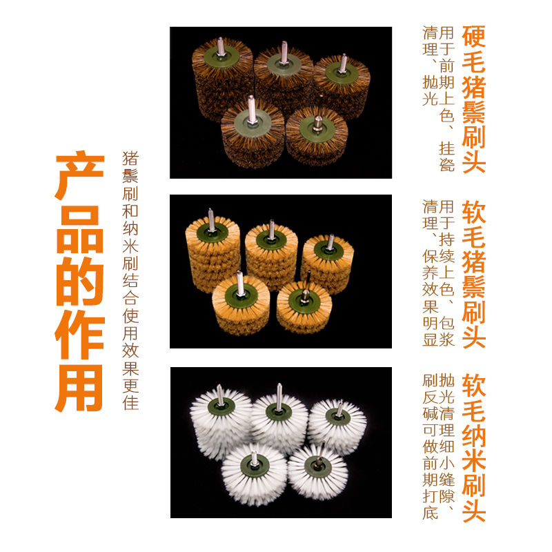 Gourd peeling steel wire brush text play electric brush head pig bristle nano brush walnut Vajra Bodhi cleaning patina
