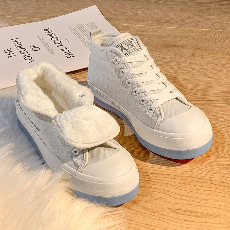 New canvas shoes female autumn and winter plus high-help shoes with warm short boots student casual cotton shoes boots