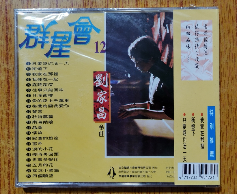 Liu Jiachang Jinqu Opera Group Star Will 12 Treasured Series T Golden Penguin Original CD New with Side Label Title 399