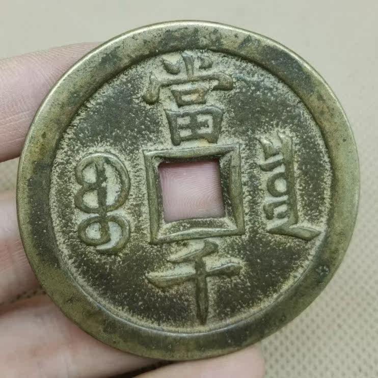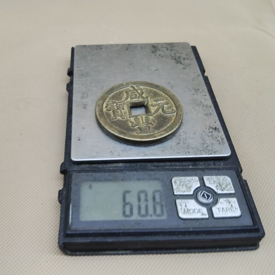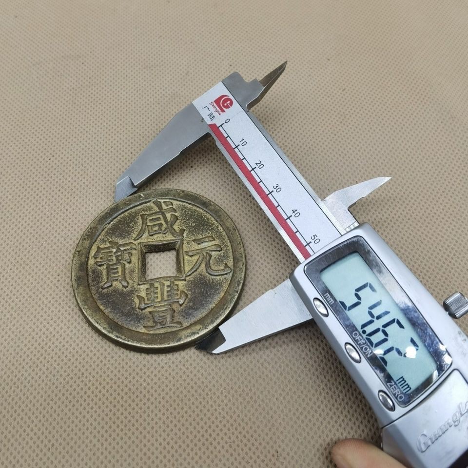 Ancient coin copper money collection Qing Dynasty Xianfeng Yuan Baby Spring Bureau When one thousand square holes ancient coin green embroidered old bag paste with beauty