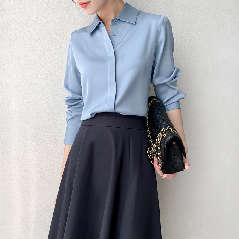 Ma's Jiamin 2021 New Elastic Real Silk Jo Forged Long Sleeve Blouse Real Silk Shirt Lean And Advanced