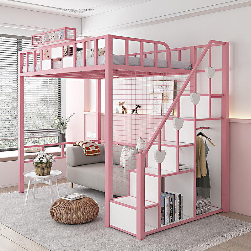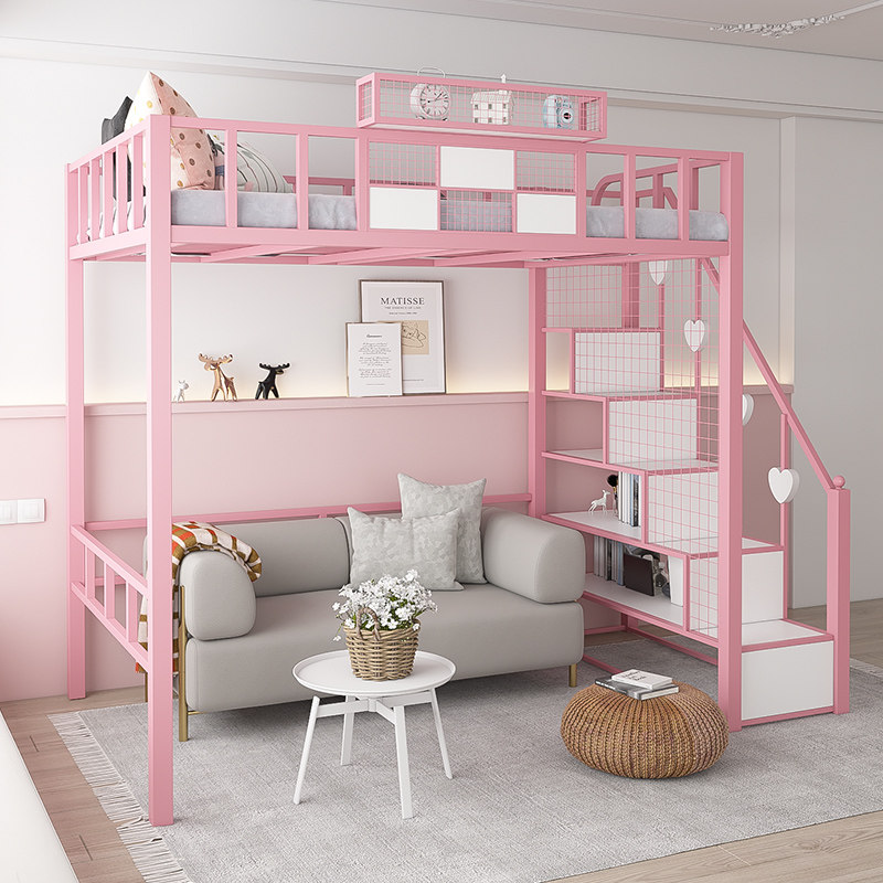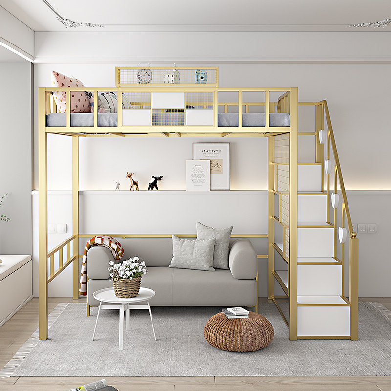 Wrought iron elevated bed under the bed empty double-layer small apartment space-saving pavilion bed upper and lower bunk apartment high and low iron frame bed