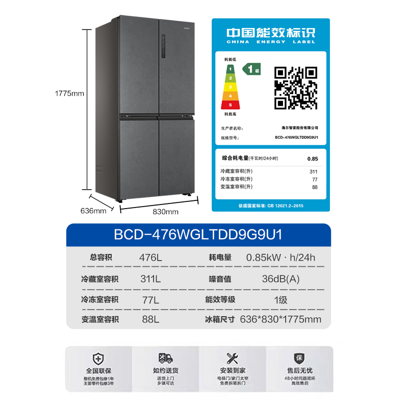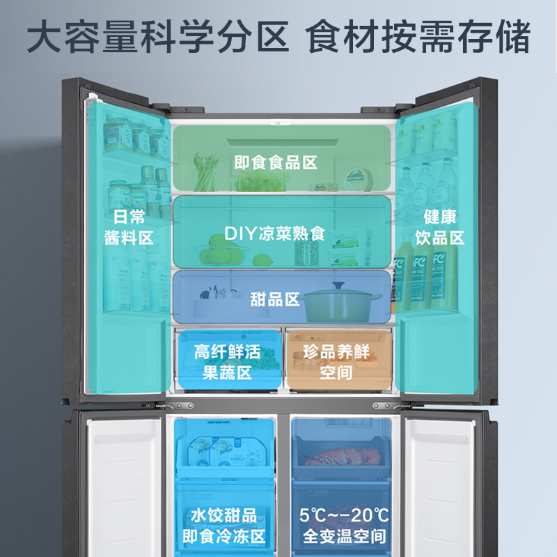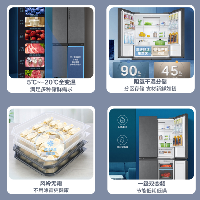 Haier commander-in-chief 476L Cross open four doors Embedded air-cooled frost-free primary frequency conversion ultra-thin Home Refrigerator-Taobao