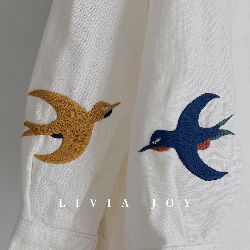 Livia Joy Exclusive Original Hand Painted Flying Swallow Pattern Organic Cotton Embroidered Shirts Boys Boys Baby Children