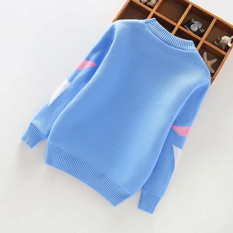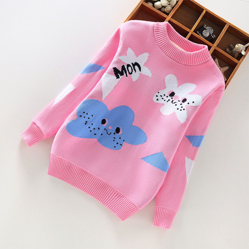Autumn and winter children's girls' baby sweater tops pullover plus velvet knitted cartoon round neck thickening