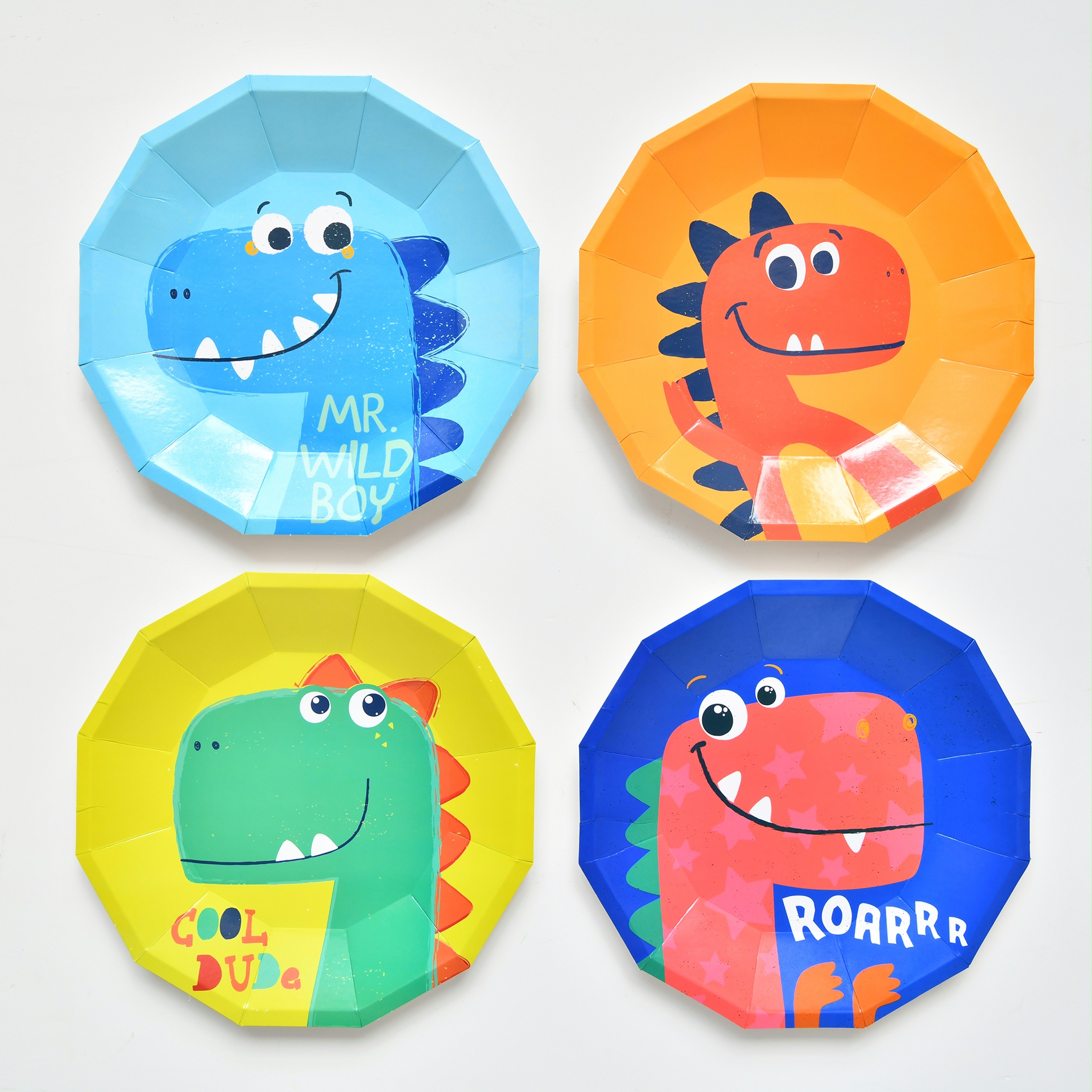 Dinosaur 4-color paper plate Dinosaur single-color paper plate Dinosaur single-color paper cup Dinosaur two-color paper cup Rainbow set Star paper plate Dinner spoon Fork Paper napkin