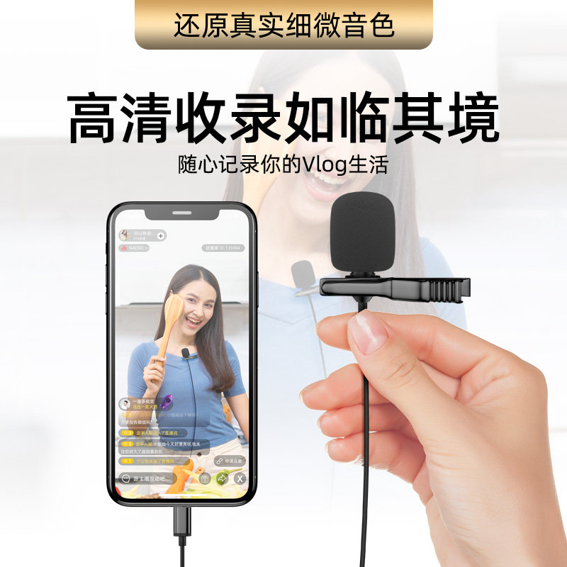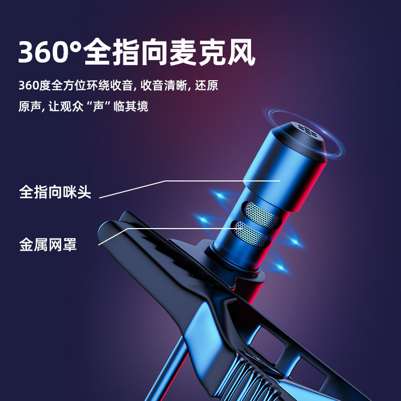 Collar clip microphone applicable Xiaomi mobile phone recording device radio wheat small bee network class intelligent noise reduction shake fast hand live K song eat sow voice-controlled mini mic computer network class sound card