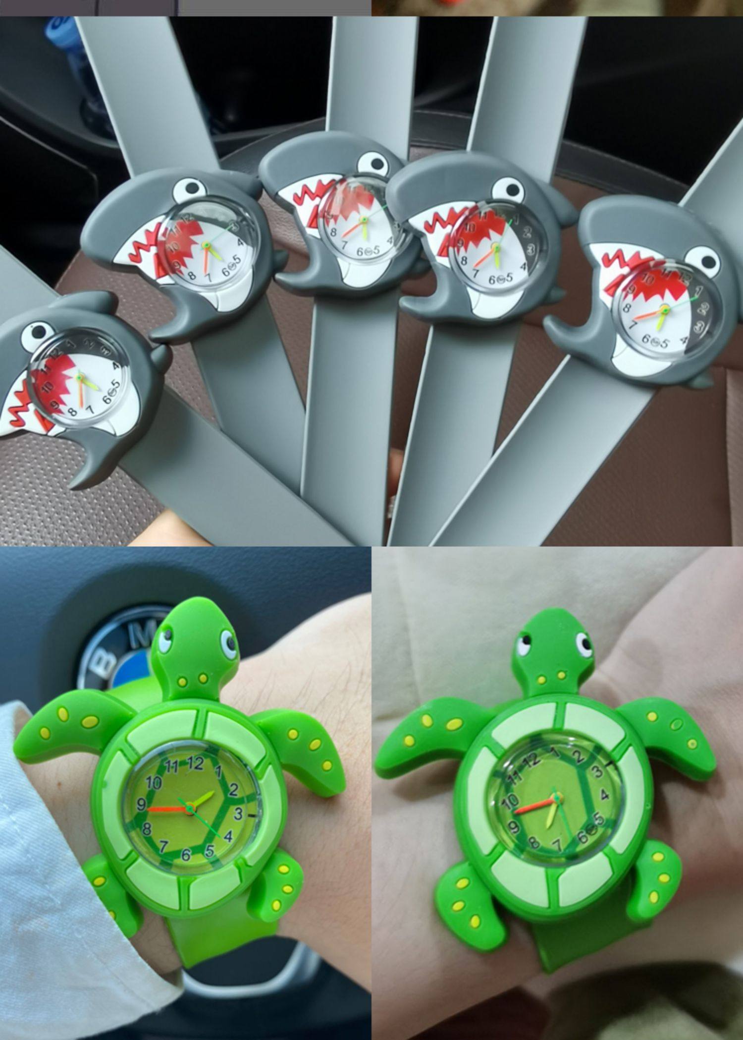 Green water tortoise messed up with a watch shake with the same sand sculpted shark small turtle pat on the table Green water tortoise watches the whole man toy