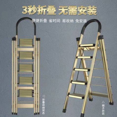 Multifunctional human-lit aluminum alloy ladder household thickness folding and retractable room in Japan with drying rack dual use