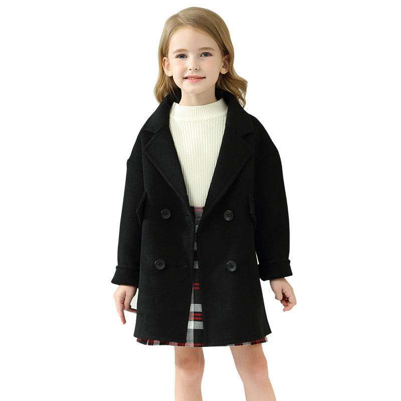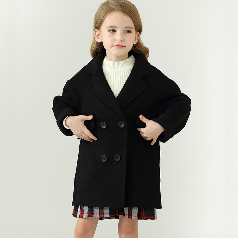Girl Bifacial Cashmere Big Coat Boy 2021 Autumn Winter New Korean version in Korean version Long Coat Child Fur Coats