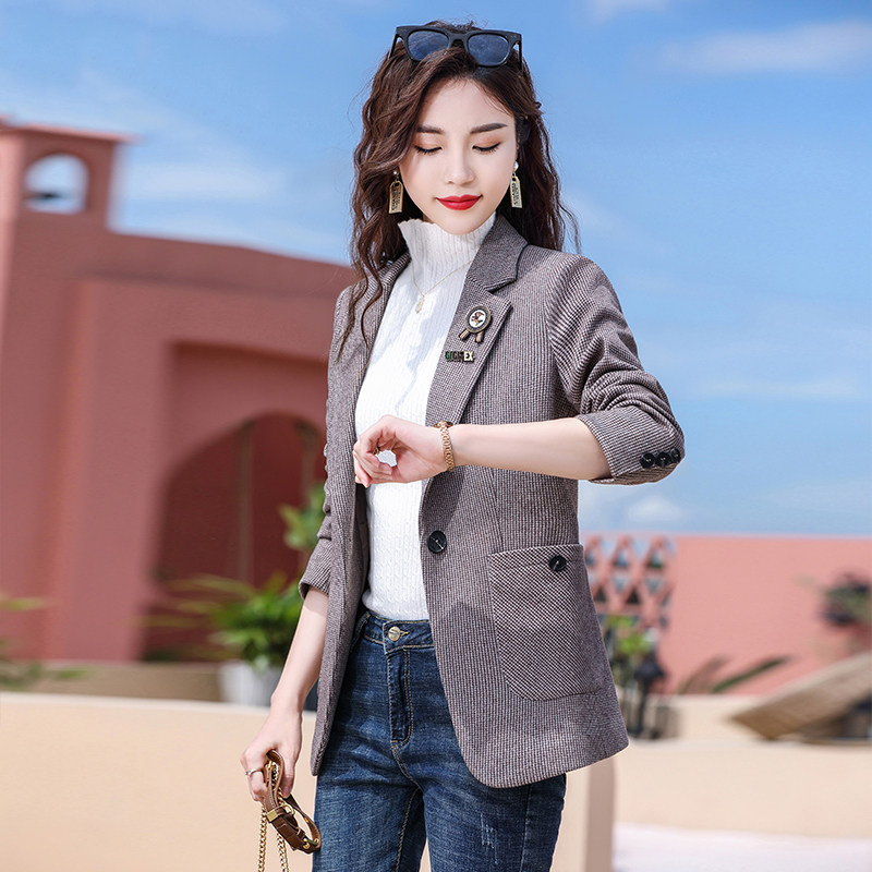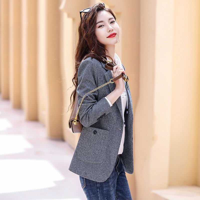 Plaid suit jacket women's autumn and winter cotton thickening 2022 new temperament casual houndstooth small suit jacket