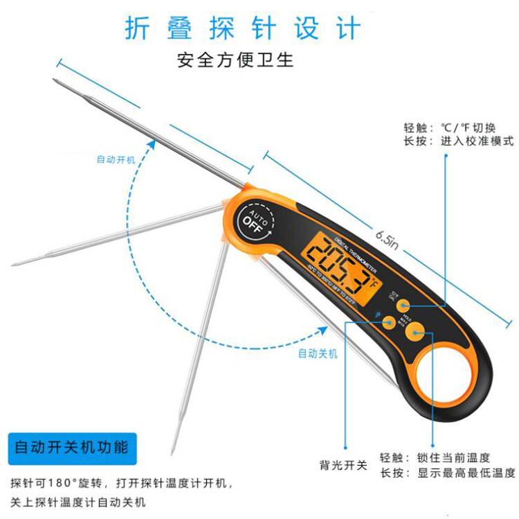 Food Thermometer oil temperature Water temperature Boiling Sugar Kitchen High Precision Home Electronic Folding Waterproof Night Probe With Backlit