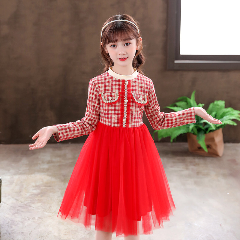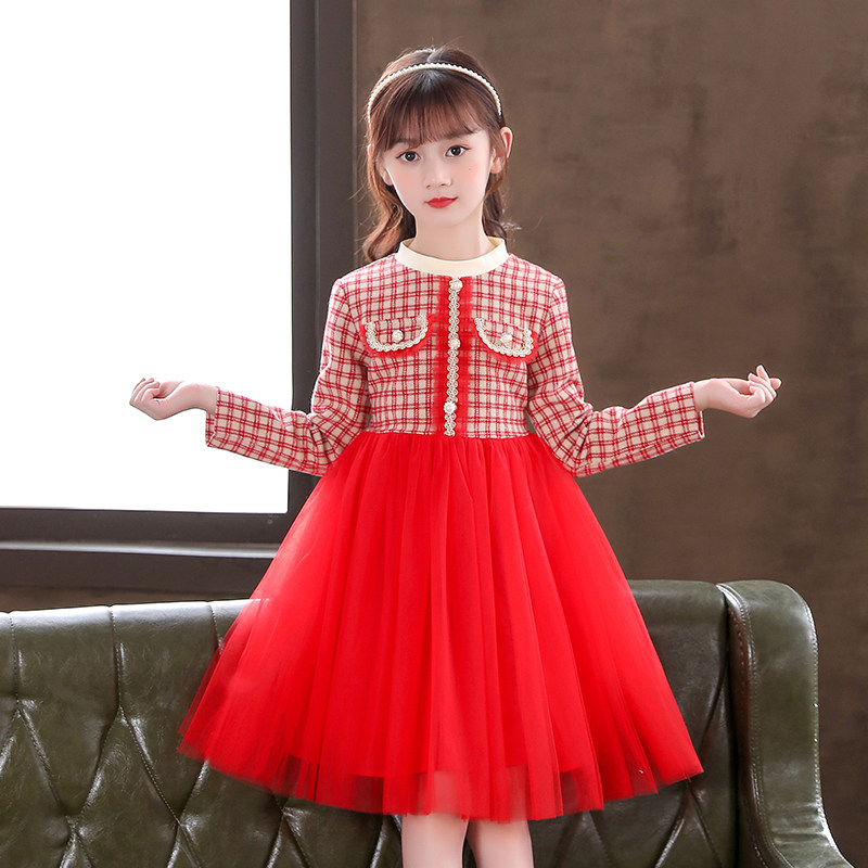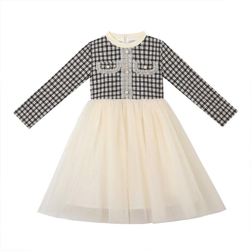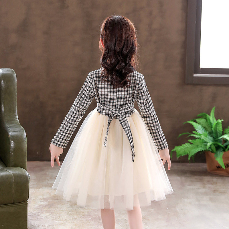 Spring and autumn girls' plaid dress for children, baby princess nepotism two sets of style retro girl temperament dress